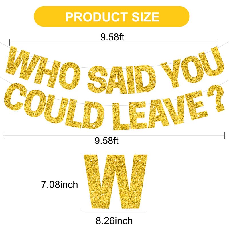 - 【What you will get】 "Who Said You Could Leave" shiny banner consists of 2pcs banners, shiny color and beautiful design can decorate your party well.