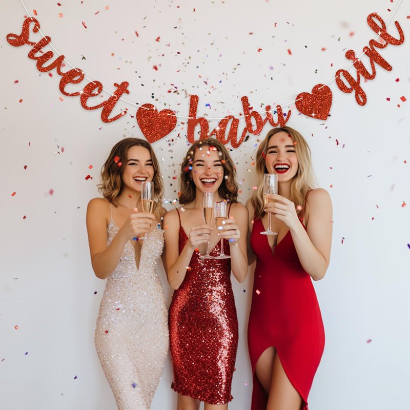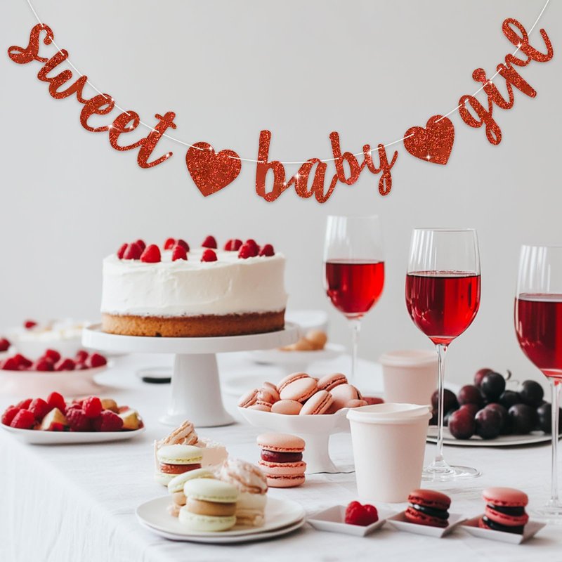BEISHIDA Red Sweet Girl Baby Glitter Banner,NO DIY, Pre-Strung Baby Shower Gender Party Banner for Girl, Girl Baby Shower Decoration,Girl Baby Shower Sign,First Birthday Party Supplies