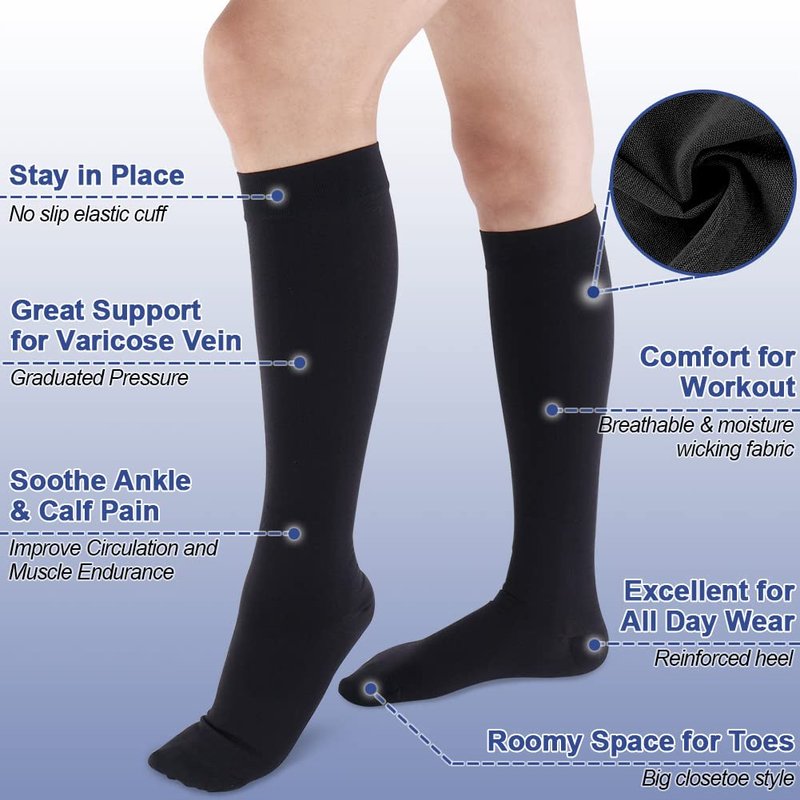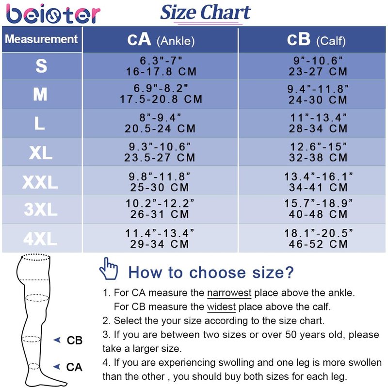 - THERAPEUTIC EFFECT: Beister will bring you well-designed compression support socks that provides graduated compression from the ankle to upper calf. Therapeutic compression hosiery which promotes blood circulation, helps relieve tired, aching, fatigued legs. Ideal for treatment of varicose and spider veins, diabetic support, long flights and general swelling or inflammation of the legs and feet