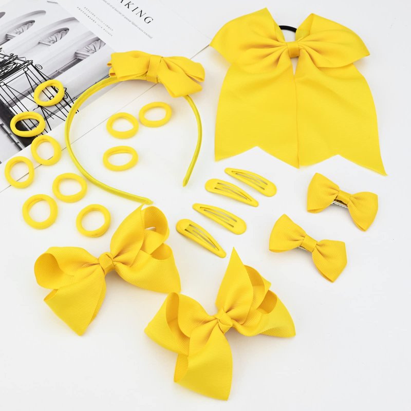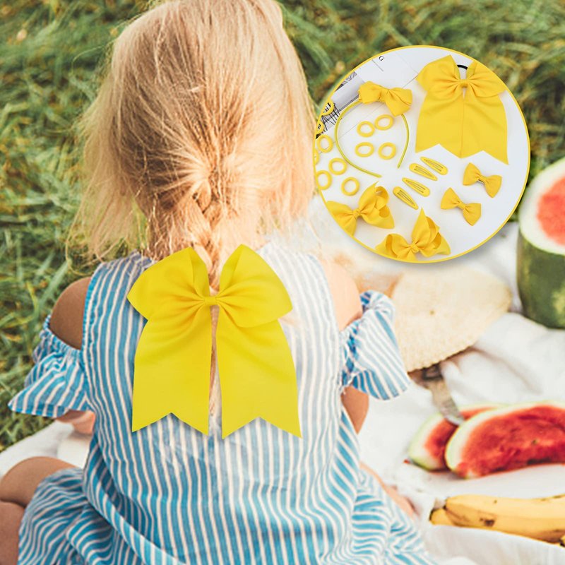 Bekecidi 20 Pieces Bow Hair Accessories Set Bow Hairpin Bow Hair Clips Rubber Band Bow Headband Bows Ribbon for Girls Kids (Yellow)