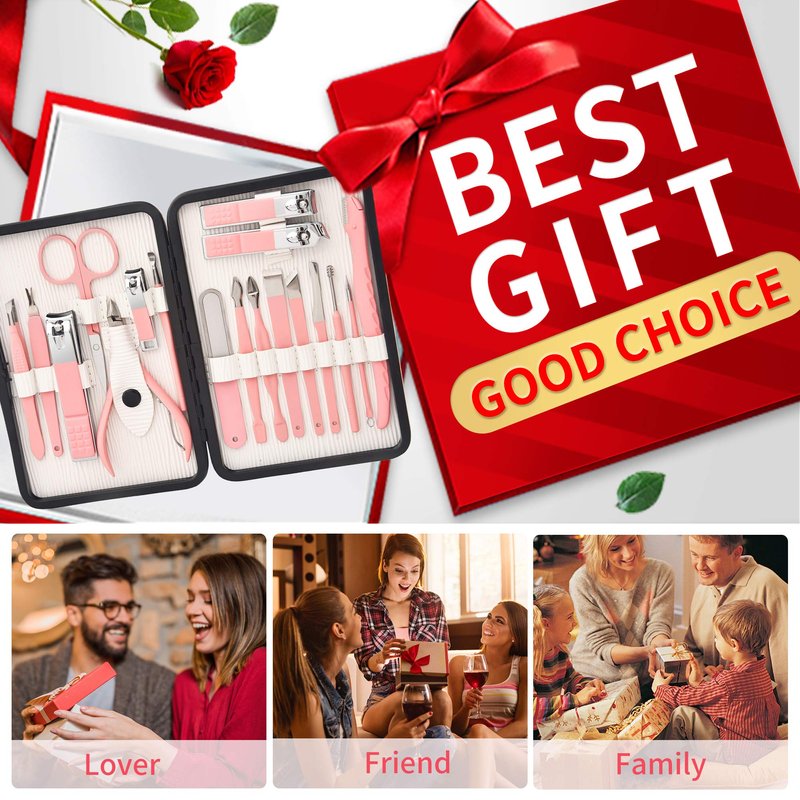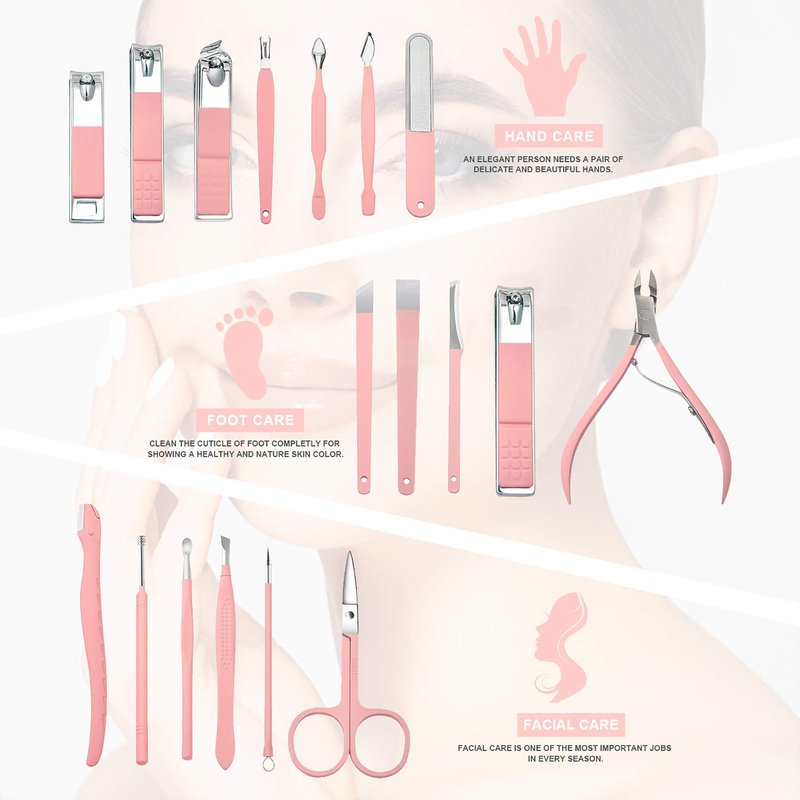 - 💓UNIQUE DESIGN: Our nail and foot kit, its highlight is black tools with a pink high-quality Water ripple PVC leather texture case, comfortable, fashion and practical. The handle on the kits set is smooth and non-slip. It's an excellent quality gift for Christmas, birthday, anniversary and Mother's Day, Father's Day, Valentine's Day!