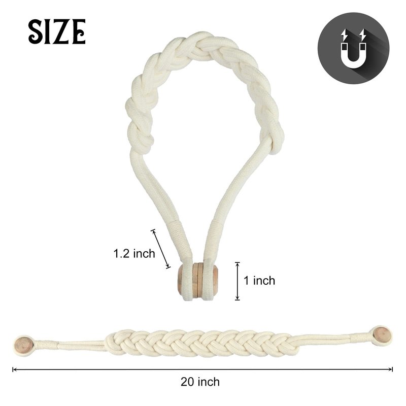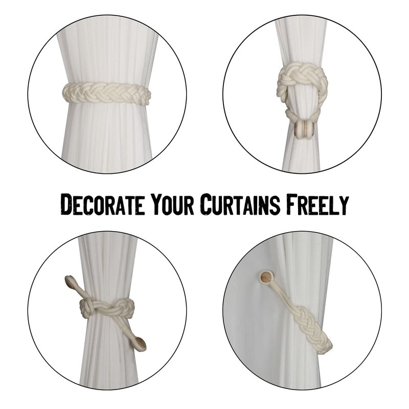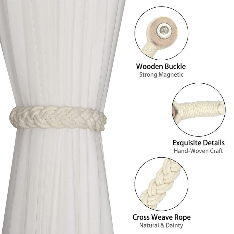 BEL AVENIR Curtain Tiebacks Magnetic Woven Curtain Holdback Drapery Tie-Back (Ivory Braid-2 Pack)