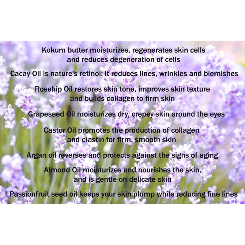 Our eye cream combines oils known for their anti aging and anti wrinkle properties for a powerful formula to hydrate the delicate skin around your eyes and reduce fine lines and wrinkles. A dot on your lids day and night, and the anti-aging eye cream maintains proper hydration and helps smooth skin.