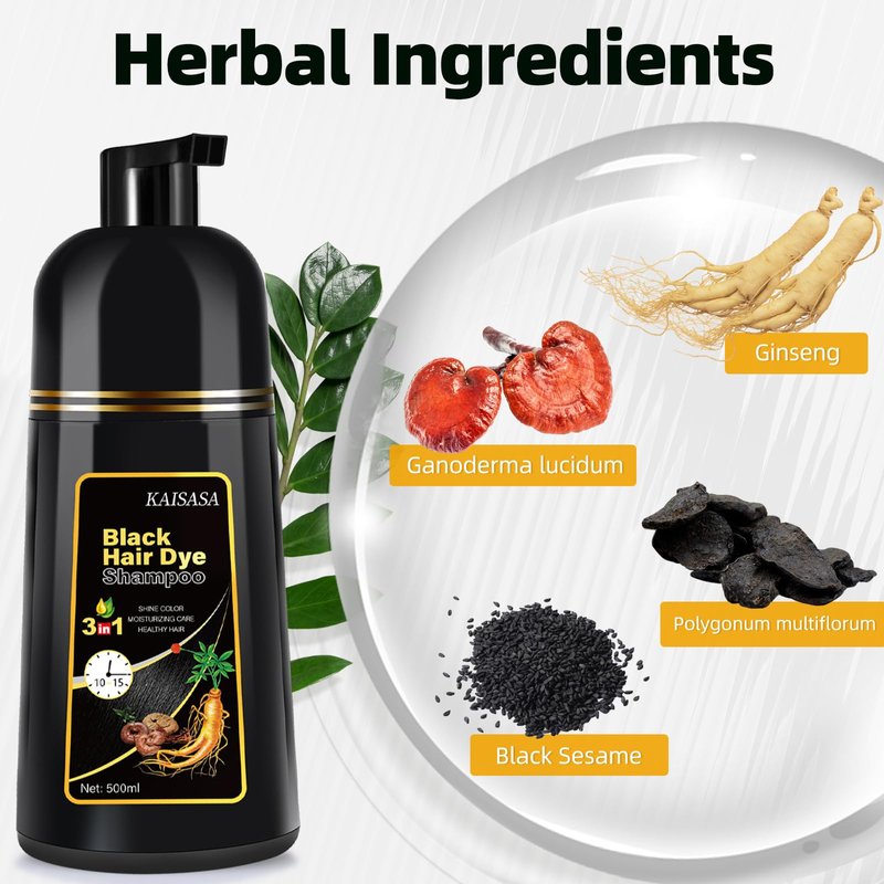 - Nourishing Herbal Ingredients: Our gentle formula is enriched with natural plant extracts. Polygonum multiflorum aids in treating hair, fortifying roots for stronger, softer strands, while ginseng extract revitalizes hair, leaving it dark and lustrous. Enjoy the benefits of a mild herbal composition that ensures your hair's health and a natural black sheen lasting beyond 3 weeks.