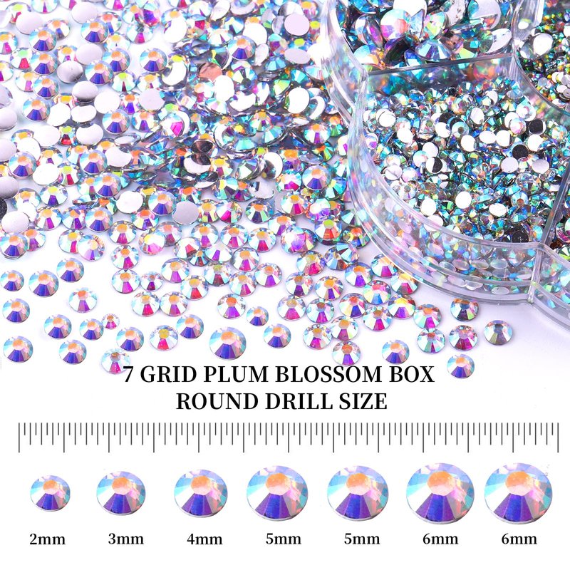 BELICEY 6000Pcs Resin Rhinestones for Crafting 2/3/4/5/6mm Gradient AB Flatback Round Crystal Gems Beads for DIY Nail Art Makeup Crafts Clothes Tumblers Decoration with Tweezers and Picking Pen