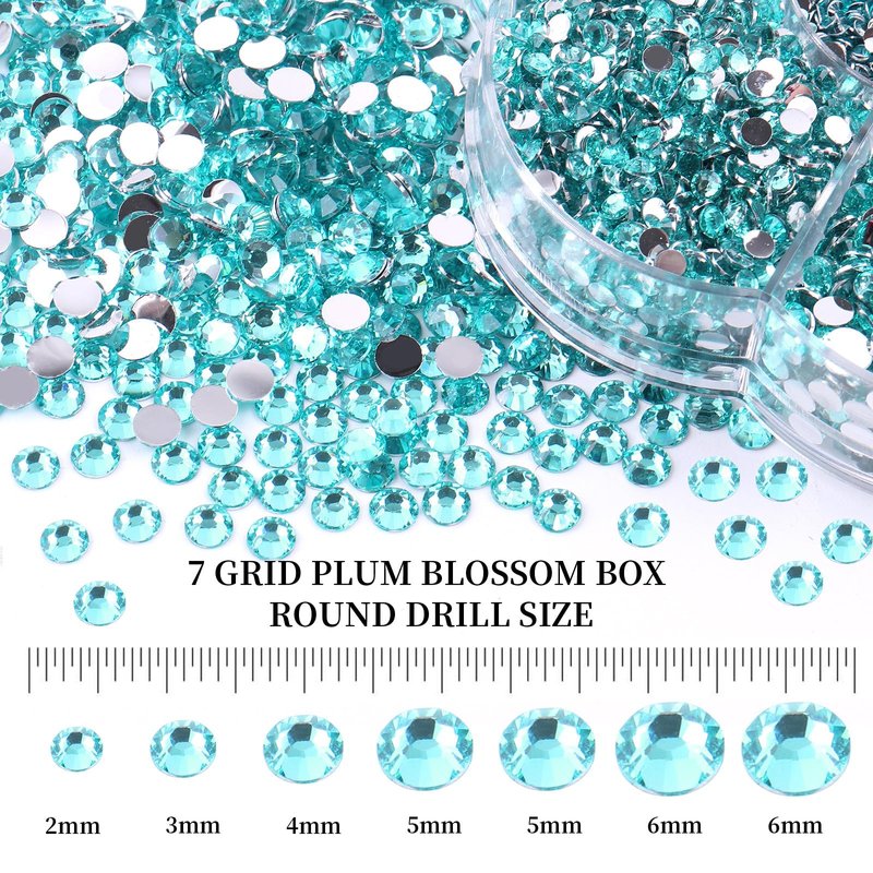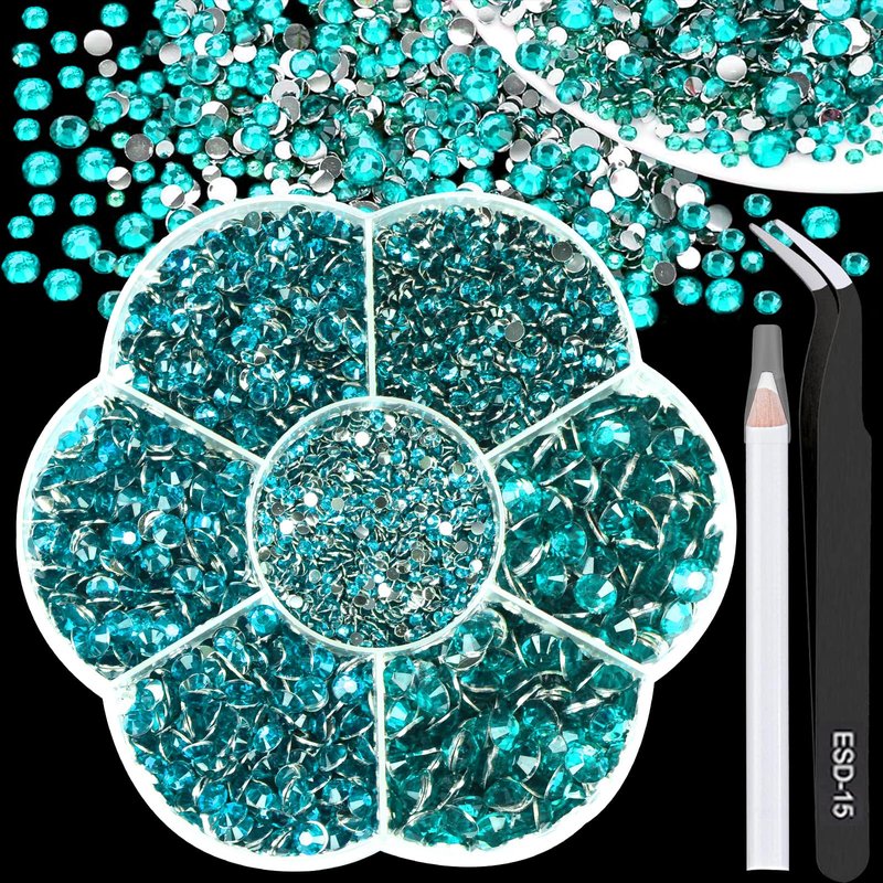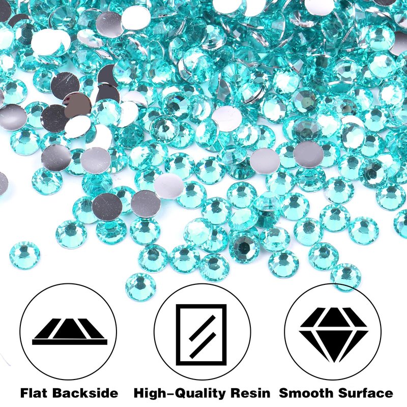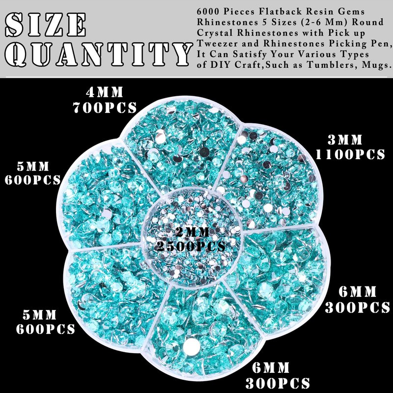 BELICEY 6000Pcs Resin Rhinestones for Crafting 2/3/4/5/6mm Lake Blue Flatback Round Crystal Gems Beads for DIY Nail Art Makeup Crafts Clothes Tumblers Decoration with Tweezers and Picking Pen