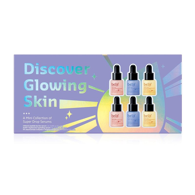 belif Discover Glowing Skin Mini Kit: Peptides Firming Serum, Multi7-Hyaluron Hydrating Serum, Vitamin C Serum, Super Drops Trial Set, Hyaluronic Acid, 5% Niacinamide, Retinol, Korean Skin Care