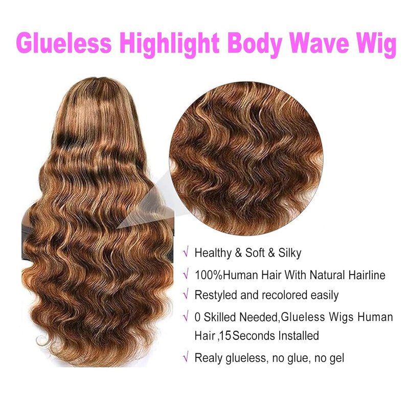 - 【Honey Blonde Colored Wigs Occasions】:Ombre honey blonde hd lace front wigs human hair is a style trend frontal wigs with popular 4/27 highlight colored. Best quality body wave wigs are suitable for birthday ,weddings, datings, themed parties, holidays, graduation,cosplay ,Christmas Day or any other occasion you want.