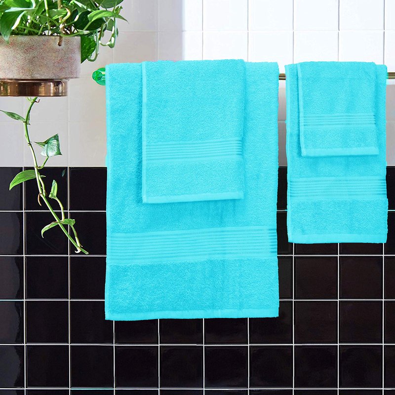 Belizzi Home Ultra Soft 6 Pack Cotton Towel Set, Contains 2 Bath Towels 28x55 inch, 2 Hand Towels 16x24 inch & 2 Wash Coths 12x12 inch, Ideal for Everyday use, Compact & Lightweight - Turquoise Blue