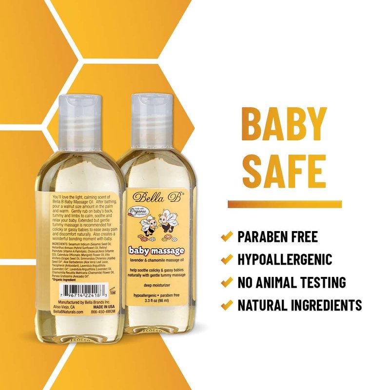 - MASSAGE OIL FOR BABY: This natural baby massage oil helps to soothe colicky and gassy babies.