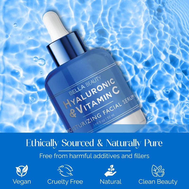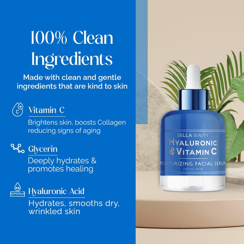 - BELLA BEAUTY Hyaluronic Acid & Vitamin C Moisturizing Facial Serum - Soothing & Deeply Hydrating - Reduces Wrinkles & Fine Lines, Boosts Collagen - Made in Korea - 50mL / 1.69 fl.oz