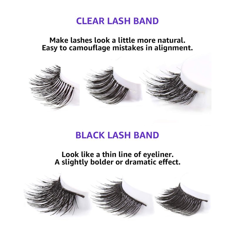 - Flexibility: Thin clear band & black cotton strip not only makes it very comfortable to wear all day, but also add lashes length and volume without looking unnatural.