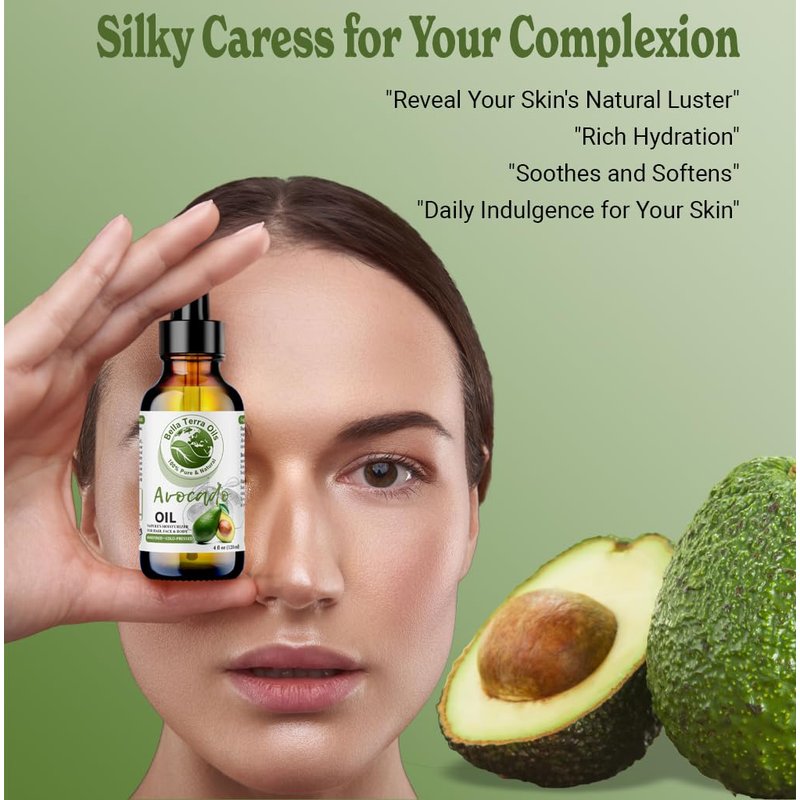 Bella Terra Oils - Avocado Oil 4 oz - Dive into The Purity of Natural Avocado, Abundant in Vitamin K & C, Superior Blend for Essential Oils