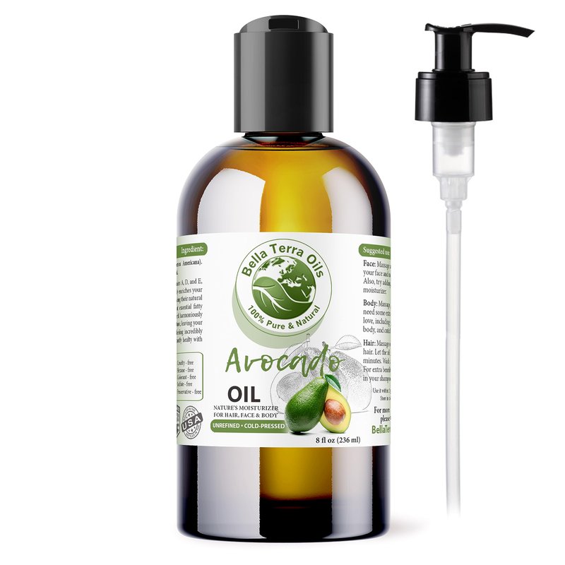 Bella Terra Oils - Avocado Oil 8 oz - A Luxurious Dive into Natural Avocado Benefits, Enriched with Potassium & Folic Acid, Elevate Your Skin Care Routine