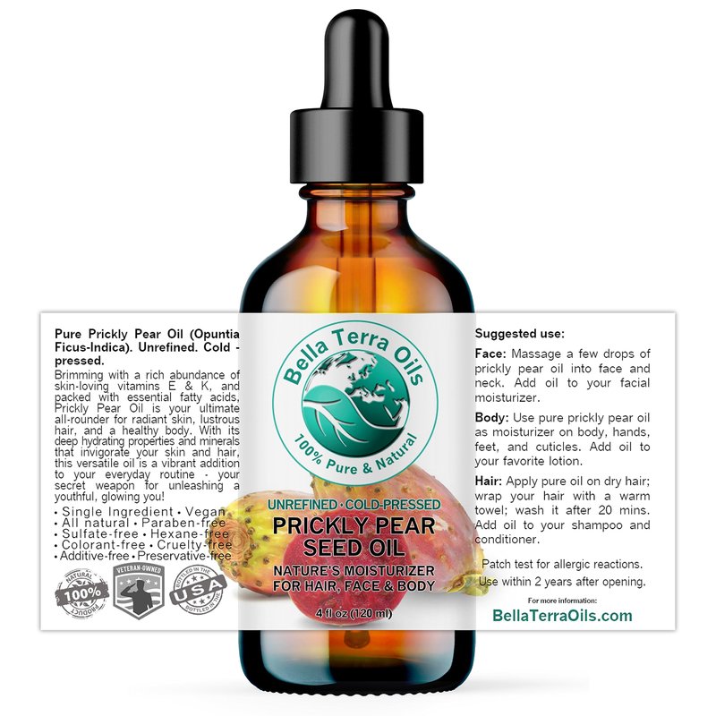 Bella Terra Oils - Prickly Pear Oil 4 oz - Extracted from Cactus Pear, Enriched with Omega-6, Vitamin K, Experience The Opulence of Nature