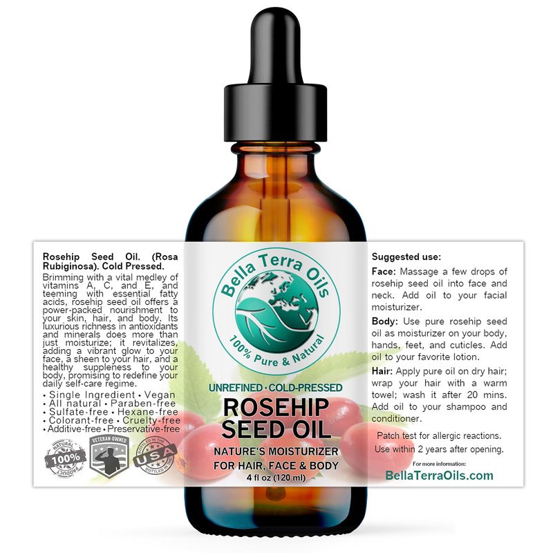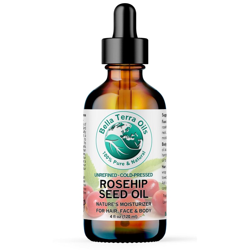 Bella Terra Oils - Rosehip Oil 4oz - Hailing from the Finest Rosa Mosqueta, Abundant in Omega-6 & Omega-3 Fatty Acids, Pure Radiance for Face