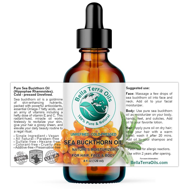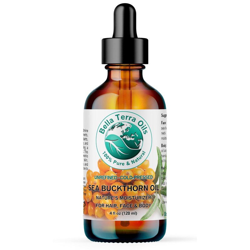 Bella Terra Oils - Sea Buckthorn Oil 4 oz - Unlock the Gold Standard in Skincare, Infused with Omega-3, Omega-6 & Carotenoids, Elevate Your Cosmetic Routine
