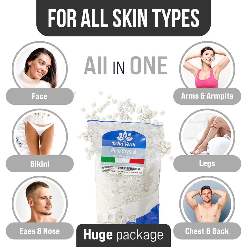 - Versatile - Wax beads can be applied to all types of skin and are equally suitable for legs, underarms, bikini and Brazilian, facial area, eyebrow, nose, upper lip depilation for both - women and men!