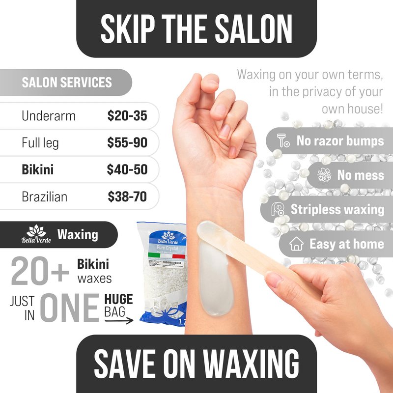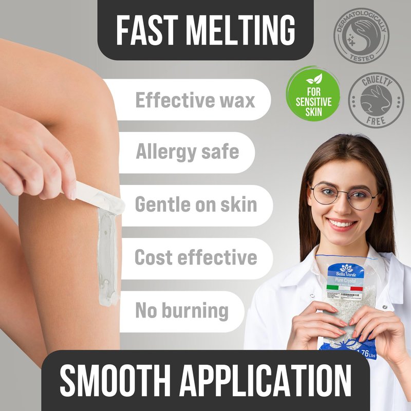 - Made in Italy - BellaVerde hard wax beans are made in Italy and give you stripless & hassle-free home self-waxing as they stick right to the unwanted hair rather than your skin, melt into a thin layer upon drying and can be easily pulled off with a spatula or even your fingers! Our hard bean wax is made in EU.