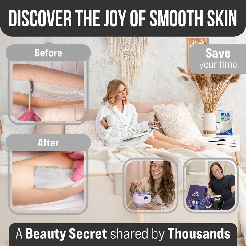 - Painless - With our premium quality depilatory hot wax you experience less pain and easier hair removal compared to traditional depilation methods.