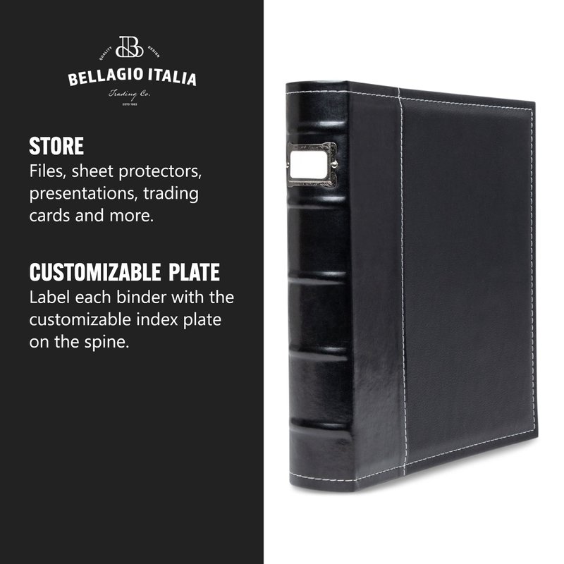 Bellagio-Italia 3 Ring Binder - 1 Inch Ring Stores up to 250 Pages - Classy Faux Leather Binder for Presentations, File Storage, and Trading Cards, Black 1-Pack (30303)