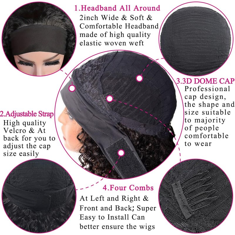 - Headband Wig Deep wave Human Hair Installation: There are clips in the front and velcro in the back.easy to wear, none lace front wigs,can make different styles according to your mood