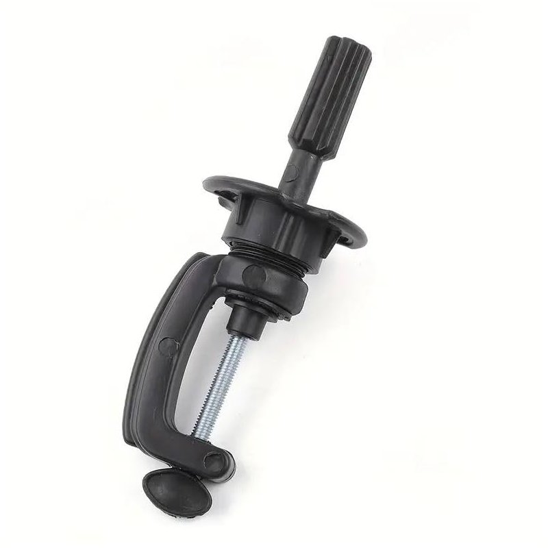 The stands easily be assembled and disassembled, can be easily placed in any carrying box, easy to carry around and attaches right to the edge of a countertop or table.