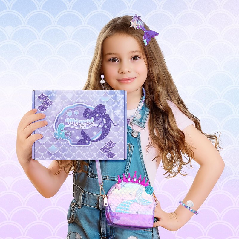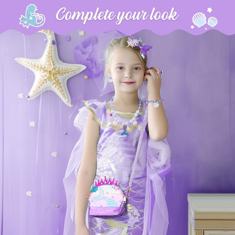 - ❤️ADORABLE MERMAID DESIGN: Delight your princess with this cute mermaid purse and beautiful jewelry sets. She will absolutely love this special gift! (IF THERE IS ANY PROBLEM, PLEASE FEEL FREE TO CONTACT US.)