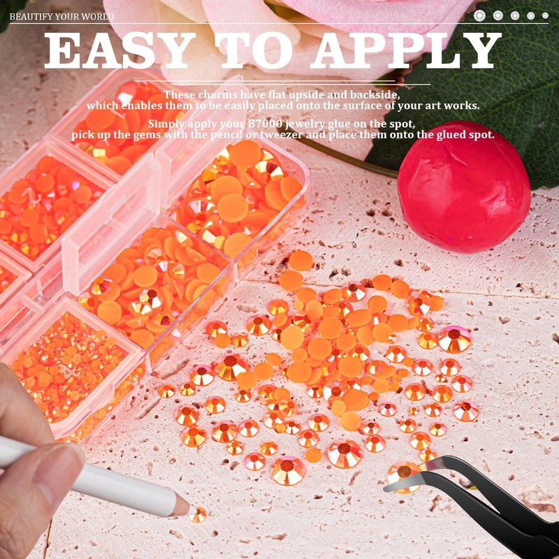BELLEBOOST Resin Rhinestones Kits, 2/3/4/5/6mm Flatback Jelly Rhinestones, 2 Box Orange AB Non Hotfix Crystal Gems for DIY Crafts Mugs Bottles Tumblers Clothes Makeup Nail Manicure
