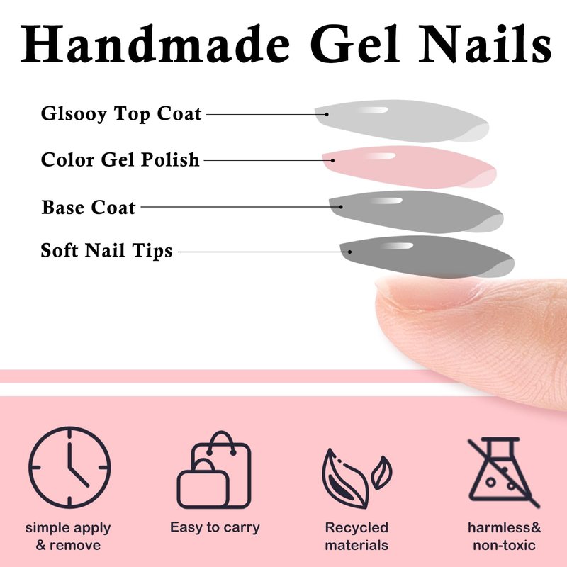 These acrylic press on nail is specially designed according to women's size and curvature, perfect fit and more comfortable to wear, make artificial nails look more natural. And the surface of gel gloss press nails will be more shiny and smooth, looks like professional salon quality.