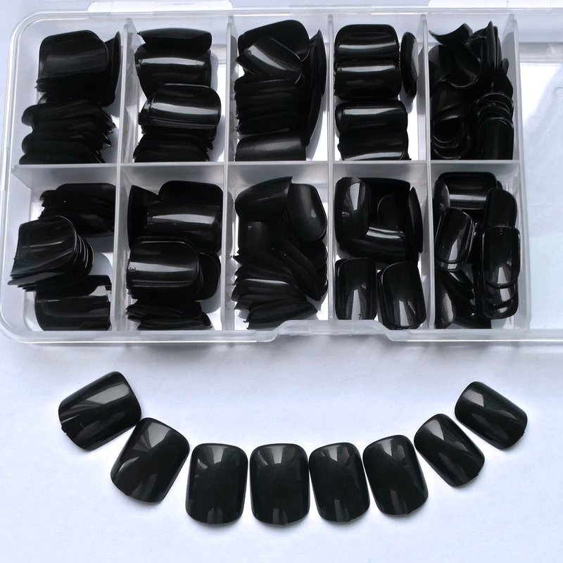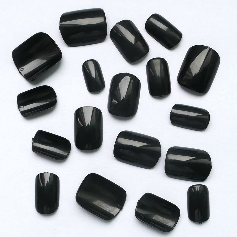 - Shiny glossy short press on nails kit, content 240pcs solid colored black fake nails with 5 sheets adhesive glue sticker, 1pc nail file tool, 1 wooden stick. No need to buy additional item, you can achieve nail freedom at home, saving you time and money, you can enjoy the fun of DIY nail