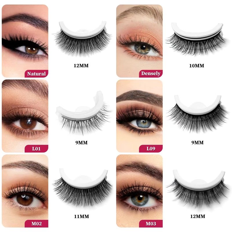- Self adhesive eyelashes kit: Includes 1 pairs of false eyelashes, 2pcs of spare self-adhesive strips on eyelashes, 1pc tweezers, Natural eyelashes with self-adhesive design, no glue or eyeliner required, saves makeup time, easy to put on and take off, newbies can easily apply these eyelashes in just 3 seconds.