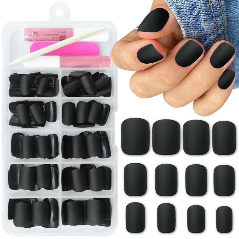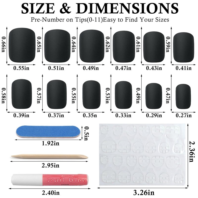 - Short press on nails kit, You will get 120pcs of short square press on nails with 12 different sizes, 2pcs nail glue, 5 sheets nail adhesive tabs, 1 nail file and 1 wooden stick for DIY your own nails. Offer you 2 ways to wear our press nails. You can choose the most suitable false nail for yourself, perfect for a quick home manicure, save your time and money.