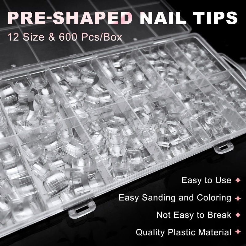 - Professional toe nail tips: 600pcs gel nail tips are choose a inner frosted designed, with stronger friction, the pre-shaped full nail tips do not need to polish your nails, this gel tips reduces damage to your natural nails and fits your reals nails better. Save your time and stick more firmly.