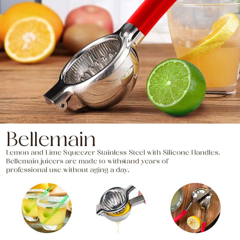 Bellemain Citrus Juicer | Metal Lemon Squeezer | Lime and Lemon Juicer Stainless Steel with Silicone Handles | Manual Juicer, Citrus Squeezer, Hand Held Juicer | Bar Juicer for Bartender Accessories