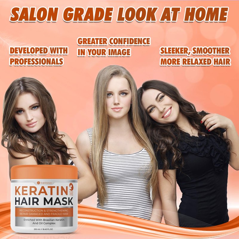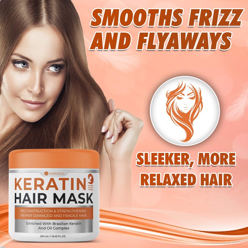 - SLEEK HAIR: This keratin hair mask treatment from Bellisso helps you achieve stronger, sleeker hair naturally; Our keratin hair mask binds to the follicles of each strand, smoothing frizz and flyways; Get the hollywood hair you deserve with Bellisso’s keratin hair mask for dry damaged hair