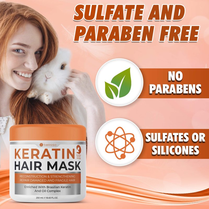 - SULFATE FREE: Say goodbye to questionable sulfates and parabens with our hair deep conditioner; Better yet, our keratin hair masks for dry damaged hair are completely cruelty free; For a keratin deep hair conditioner that treads lightly on the planet, trust only Bellisso