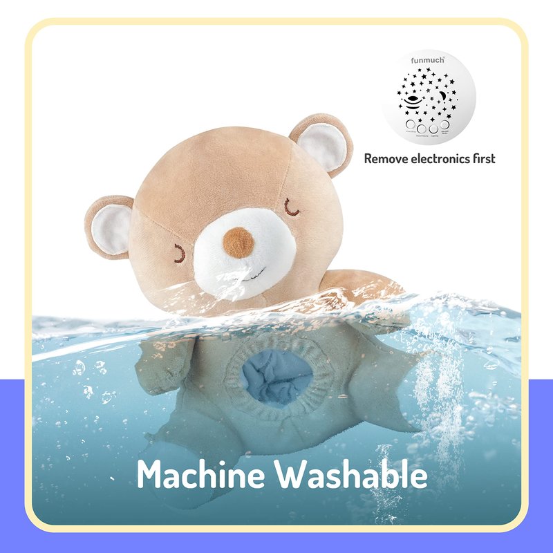 - 🎶SOOTHING SOUND: The plush soothing bear has 10 lullabies and 4 white noises, and the music can be switched at will. The plush bear is very soft to the touch, snuggling next to the cute bear can help the baby fall asleep faster