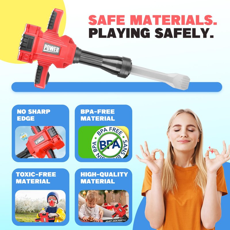 - Durable Toy Hammer - Toy jack hammer for boys aged 3 are made of toxic-free and odor-free ABS plastic, featured with high hardness, flame retardance, and lightweight.