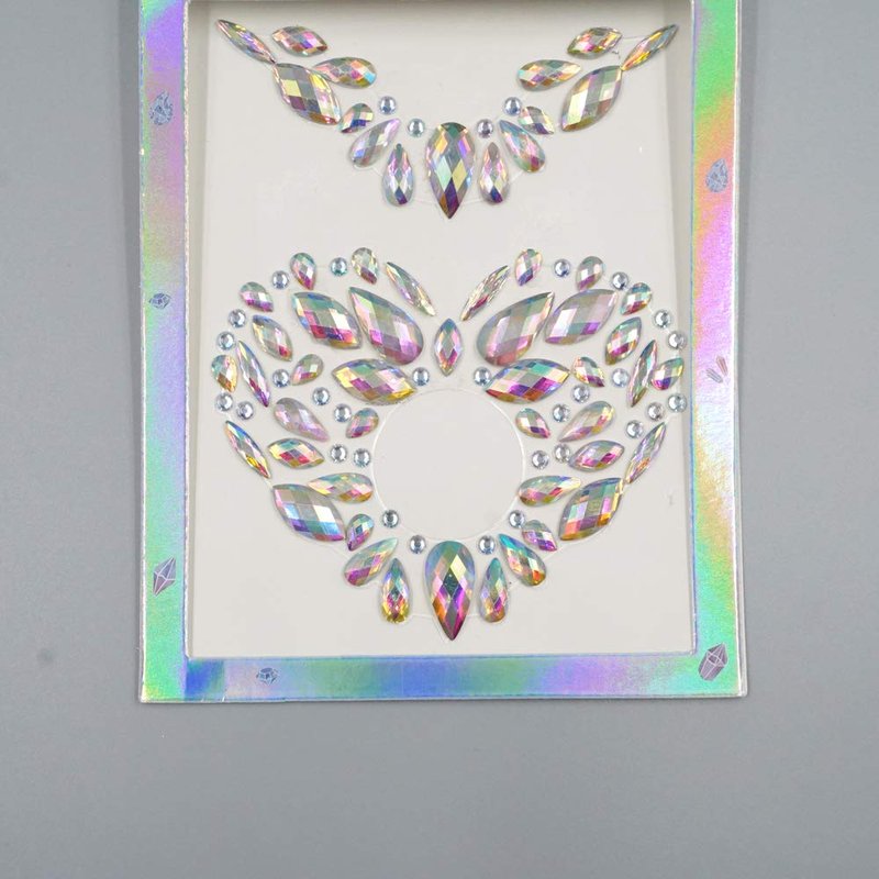 1. )Super quality acrylic/crystal material. 2. )Fashionable patterns and customized design available. 3. )eco friendly sticky strong glue. If you are hitting a festival this year or just dancing in the sun to your favourite tune! Add some sparkle and feel like a Queen. How to apply- Gently remove the all in one jewel from the plastic sheet, then press down onto face or body for 5 seconds. For best results apply to clean skin.