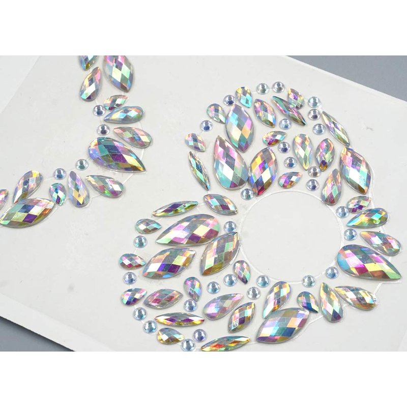 - 2. )[Versatile Design] Our body jewels are all connected with a clear gelatin-like sticky pad that can be removed in one piece and stuck onto your face or body. You can use scissors or a blade to cut off any of the jewels you don't need or to change the pattern as needed or wanted for your own style body jewels.