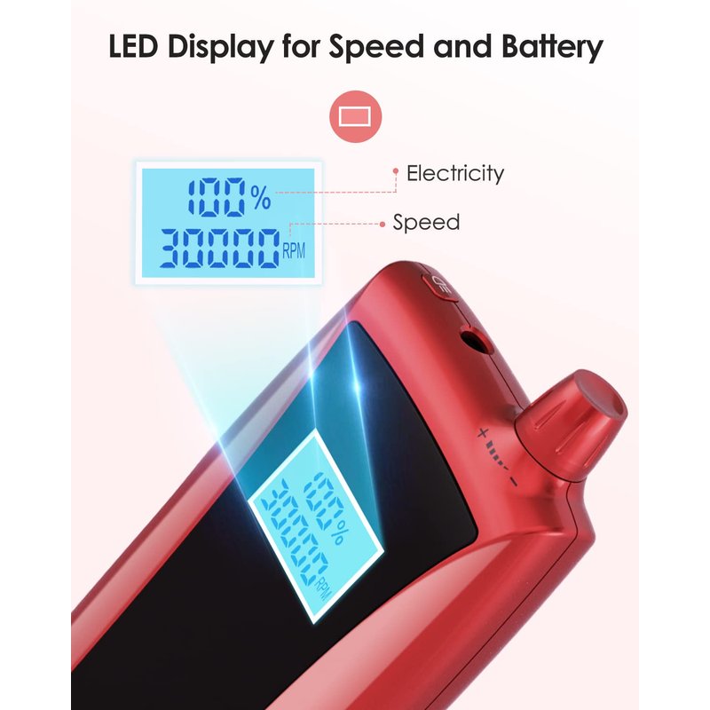 - PROFESSIONAL PERFORMANCE NAIL DRILL MACHINE: Adjustable high speed with two-way rotation is great for both left-handed and right-handed. the LED screen can display the accurate speed and power. The high torque ensures it works smoothly at a high speed.