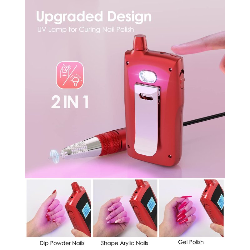 - ALL-IN-ONE ELECTRIC NAIL FILE: Except as a nail drill, it also is a nail UV lamp, which can satisfy both pre-manicure and post-manicure work. The nail drill has an automatic protection mechanism. When you use too much force, the grinder detects that it will hurt you and will automatically stop for three seconds and then work again.
