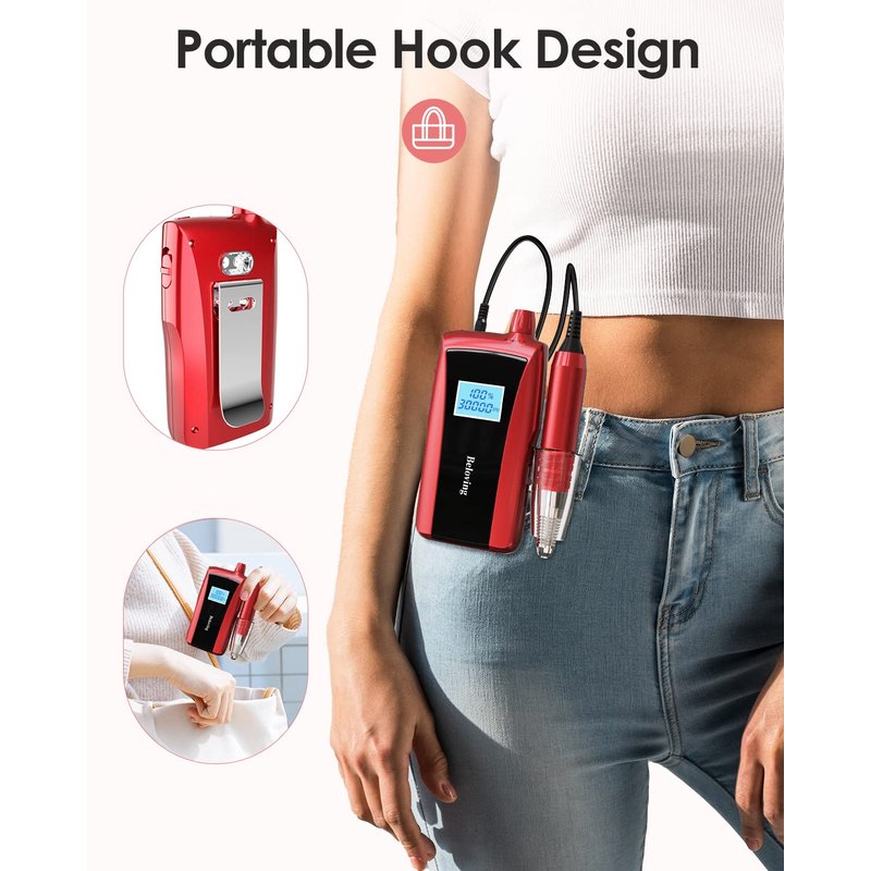 Beloving Portable Nail Drill Machine,30000RPM Rechargeable Electric Nail File Professional with Speed Display,Sanding Bands and Bits,Efile for Acrylic Dip Gel Nails Manicure Pedicure Home Salon Use