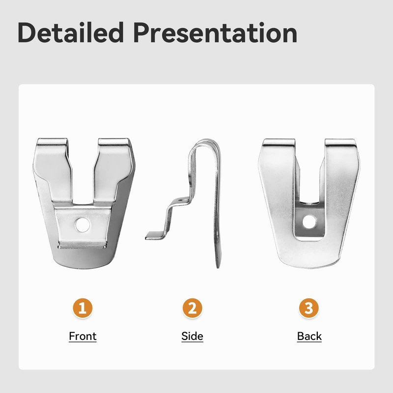 - Package Includes: You will get 5 stainless steel belt clip hooks with 5 screws, these replacement hooks will hold up well. If you do not find the screws in the package, please contact us.