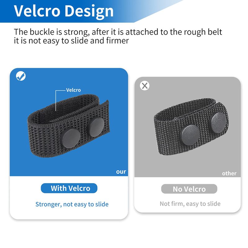 - Durable design: The double snap design of belt keepers can be holding up well to repeated opening and closing of the snaps to put on and take off of a belt. Velcro design keeps your duty belt from slipping, ensuring that your work belt can be fixed in place even when running or fighting.
