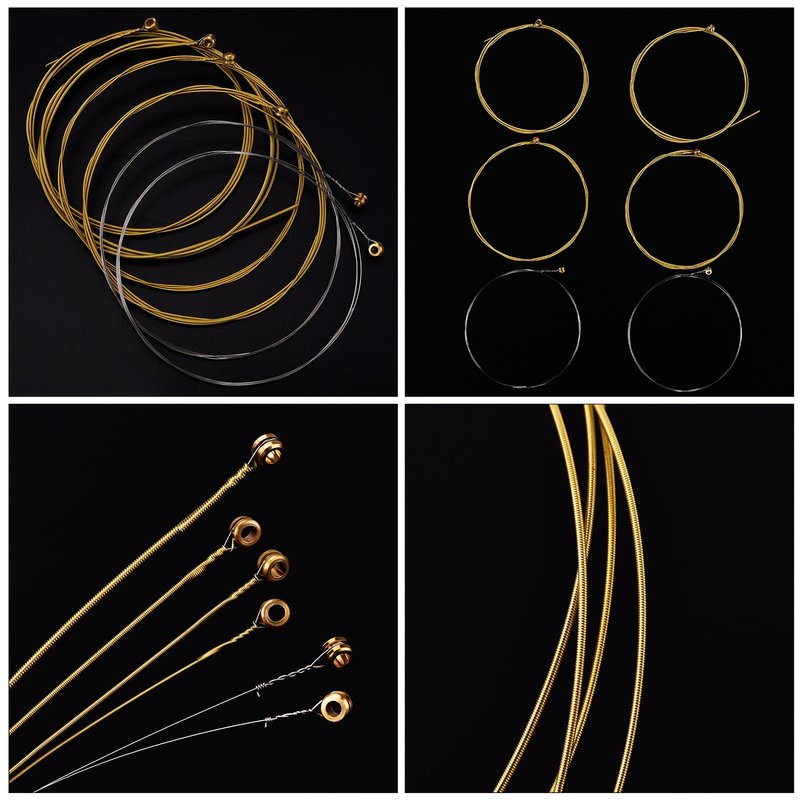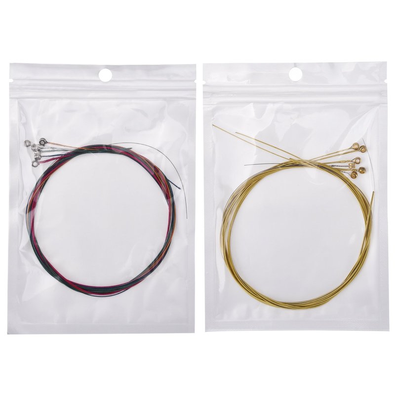 - Color: 1 set of guitar strings is multicolor (colors have blue, green, rose red, brass and silver); Another set is yellow (colors have yellow and silver)