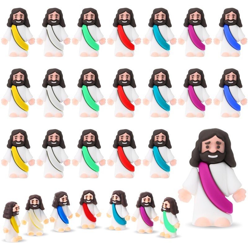 Bememo 25 Pcs Little Jesus Figures Original Design Mini Rubber Jesus Toys to Hide and Seek Religious Party Favors Sunday School Baptism Gifts(Multicolor)