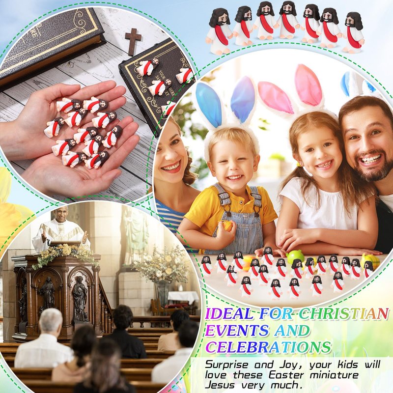 - Ideal Party Gift Solution: hand out our tiny Jesus dolls as party favors and watch as they evoke joy and spiritual connections among your guests; These tiny Jesus dolls not only serve as exquisite Easter decorations but also as mementos of the significance of Easter celebrations, can be applied for church Easter egg, school outings and other religious activities, bringing you a happy holiday