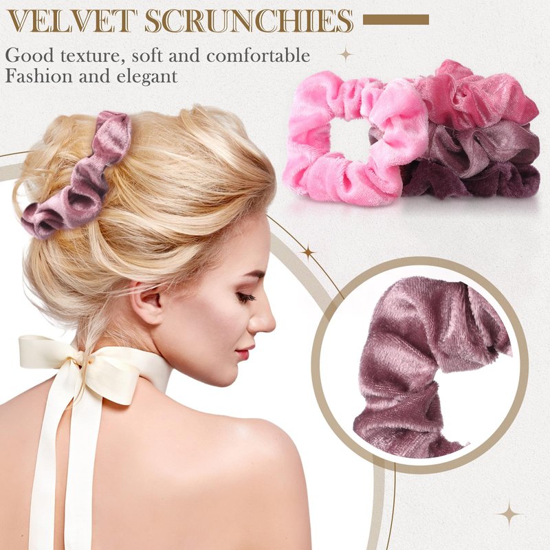 - Softer velvet material: made of velvet, good texture touches soft and comfortable, elegant and shiny appearance, the inner rubber band is stretchable and elastic, will not hurt your hair